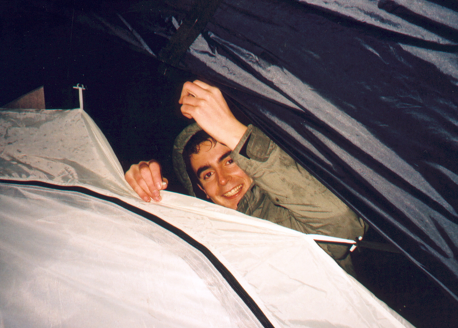 Mark entangled in tent